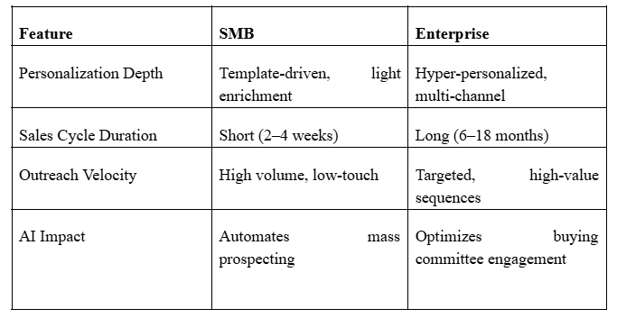 How does AI impact sales cycles in SMB vs enterprise sales?